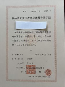 そして食品衛生責任者の資格取得。